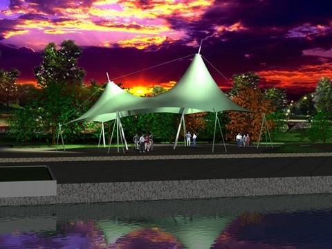 覆蓋大跨度空間:膜結(jié)構(gòu)中所使用的膜材料每平方壹公斤左右,由于自重輕,加上鋼索、鋼結(jié)構(gòu)高強(qiáng)度材料的采用,與受力體系簡(jiǎn)潔合理,大部分以軸力傳遞,故使膜結(jié)構(gòu)適合跨越大空間而形成開闊的無柱大跨度結(jié)構(gòu)體系。