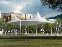 建筑環(huán)保節(jié)能:膜結(jié)構(gòu)建筑具有良好的環(huán)保性、透光性、自清潔性,膜材表面采用PVDF(聚偏二氟乙烯)涂層、或二氧化鈦涂層,具有較好的隔熱效果,對(duì)太陽(yáng)熱能可反射掉70%,膜材本身吸收了17%,傳熱13%,而透光率卻在20%以上,經(jīng)過長(zhǎng)期太陽(yáng)光直接照射,其輝度仍能保留70%。